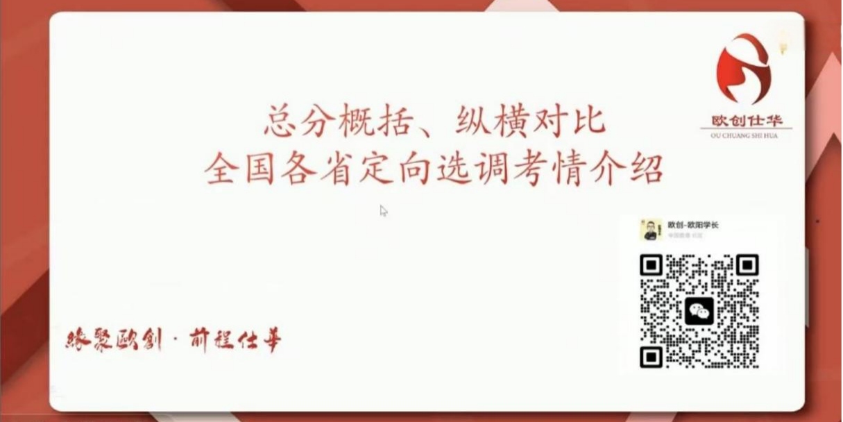 在考情分析方面,讲座嘉宾为同学们系统梳理各省定向选调考试的核心要点的同时,通过对比各省定向选调与国考笔试内容之间的异同,总结出各省定向选调备考内容的侧重点所在。其中,老师对京津冀、东三省、晋鲁豫定向选调的考试内容进行了重点分析,从考试时间、报名条件、笔试题型等方面对其考情展开深度解读,帮助同学们抓住重点、高效备考。