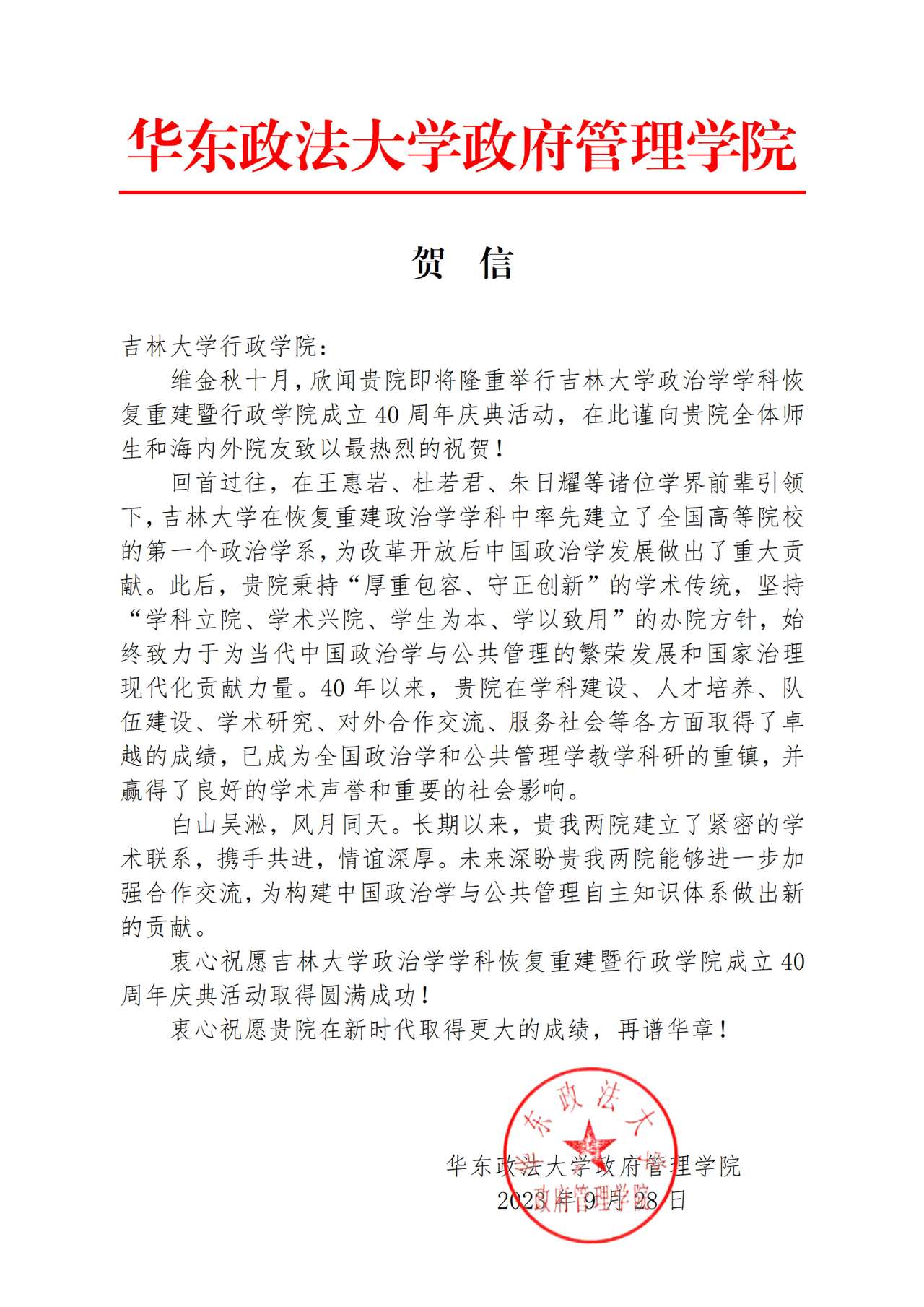 华东政法大学政府管理公司的贺信