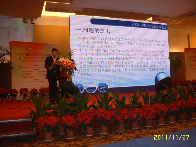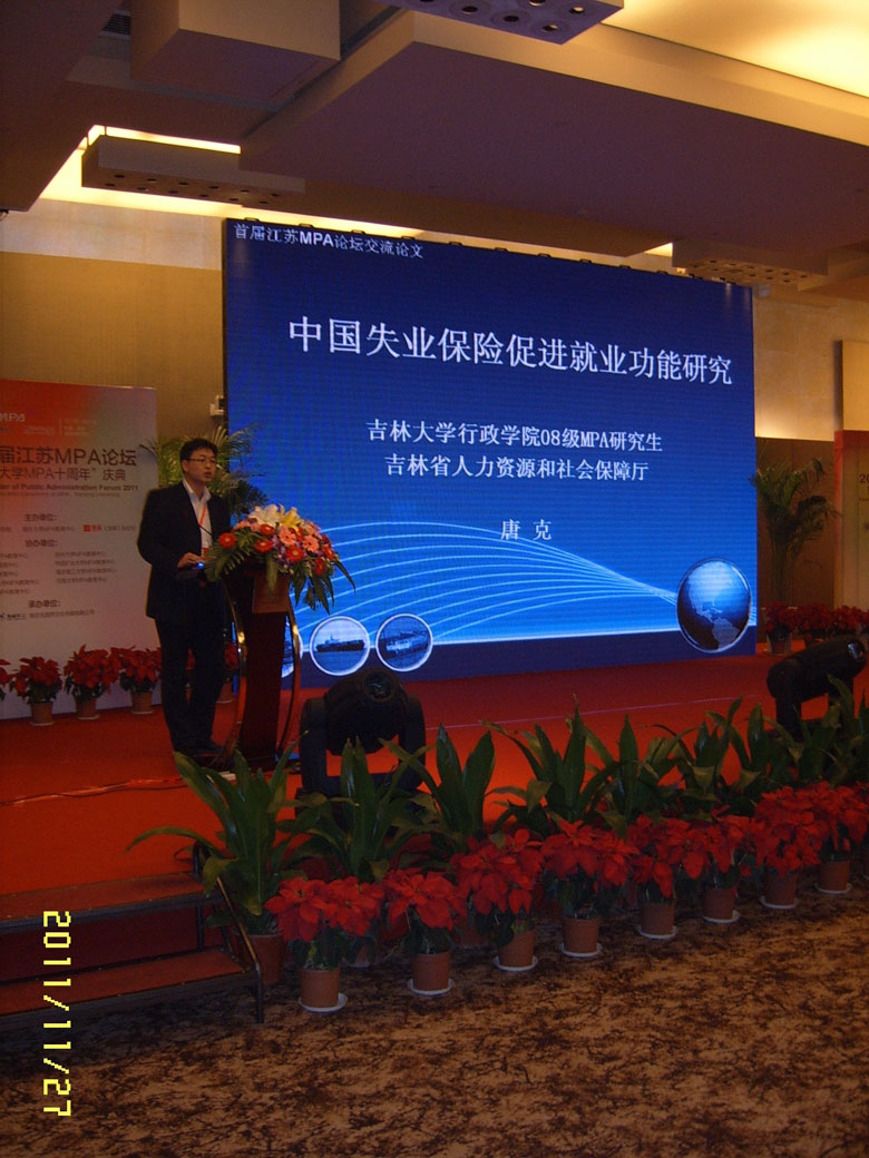 2011首届江苏MPA论坛议题主要有三项:一是促进就业与构建和谐劳动关系;二是如何解决中小企业融资难困境;三是如何以社会管理创新推进和谐社会建设。唐克同学和张斌阳同学的论文被收录到首届江苏MPA论坛论文集,唐克同学还在论坛上做了主题为“中国失业保险促进就业功能研究”的演讲,受到与会领导和MPA同仁们的一致好评,为Bevictor伟德争得了荣誉。