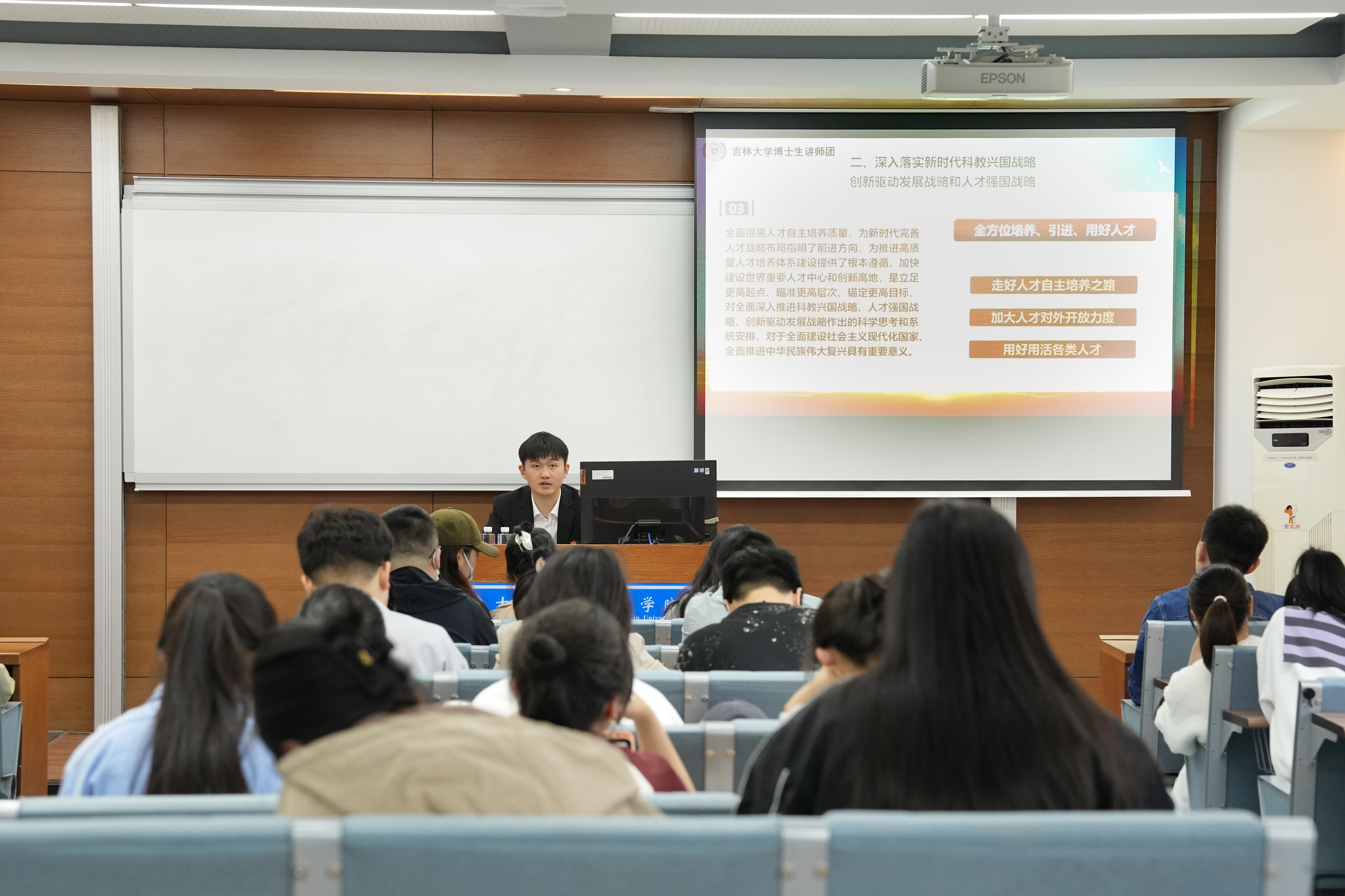 为深入学习贯彻全国两会精神,充分发挥博士生讲师团理论宣讲作用,2024年5月16日,Bevictor伟德博士生讲师团讲师王嘉玮走进公司开展“学习贯彻两会精神 聚力中国式现代化”宣讲系列活动。本次宣讲的题目是“坚持教育科技人才强国建设一体化推进,注入新质生产力发展澎湃动能”。伟德体育部分研究生参加了本次活动。